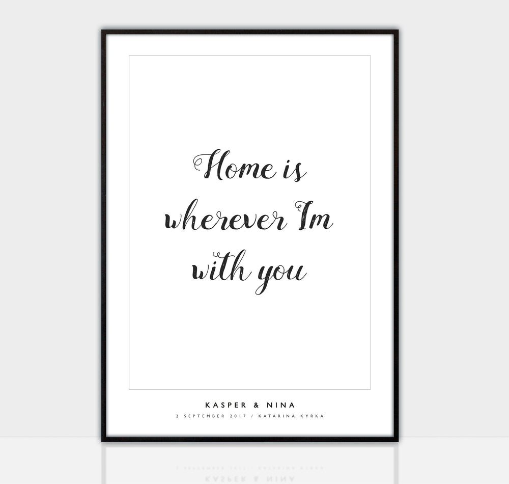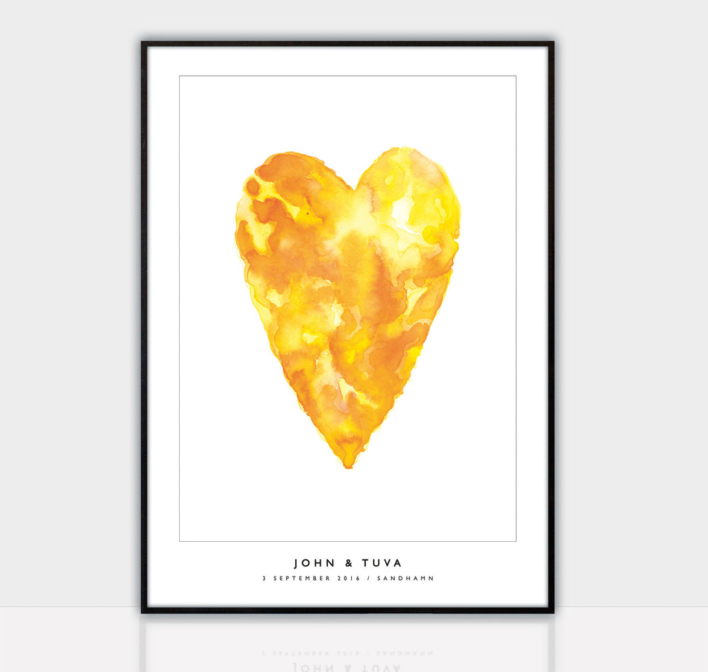 The Wedding Poster offers a dedicated selection of high quality wedding art in different designs that can be adapted to the individuality of the wedding couple. In order for you to visualize your design before ordering the poster, your design is instantly displayed on our website using our wedding poster creation tool. This way you can easily get an idea how the personalized wedding art will look like and adapt your design accordingly. After selecting artwork, you add the wedding couple names, the date and location of the wedding. Voilà - in an instant a unique and personalized wedding gift has been created!