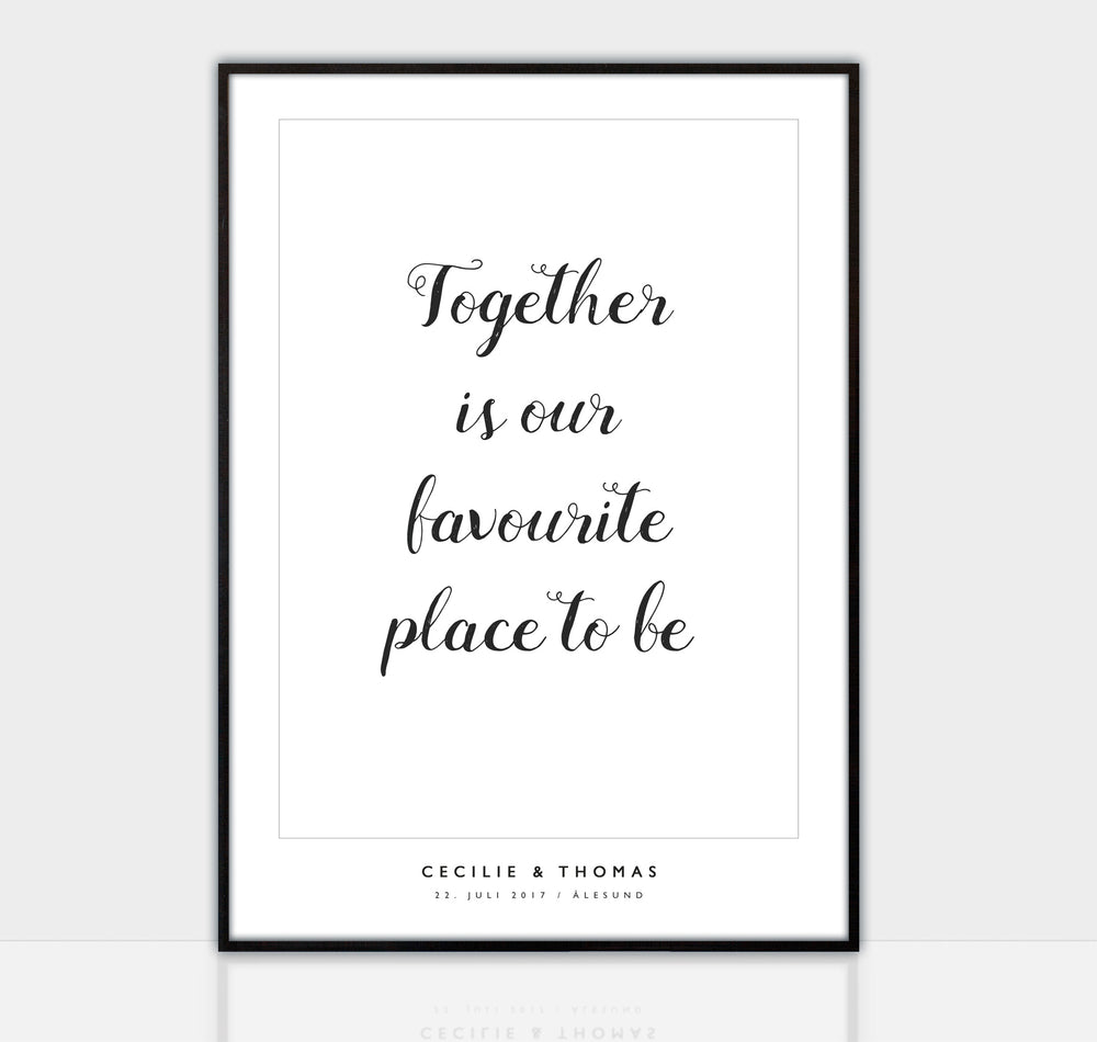 We at the The Wedding Poster are exclusively focus on one thing – creating high-quality personalized wedding posters in Nordic design. Online mass retailers, such as Allposters.com and similar may serve their purpose for some situations. However, our conviction is that personalized wedding art dedicated to one of life's most unique and memorable moments deserves yours, ours and the artists undivided attention.